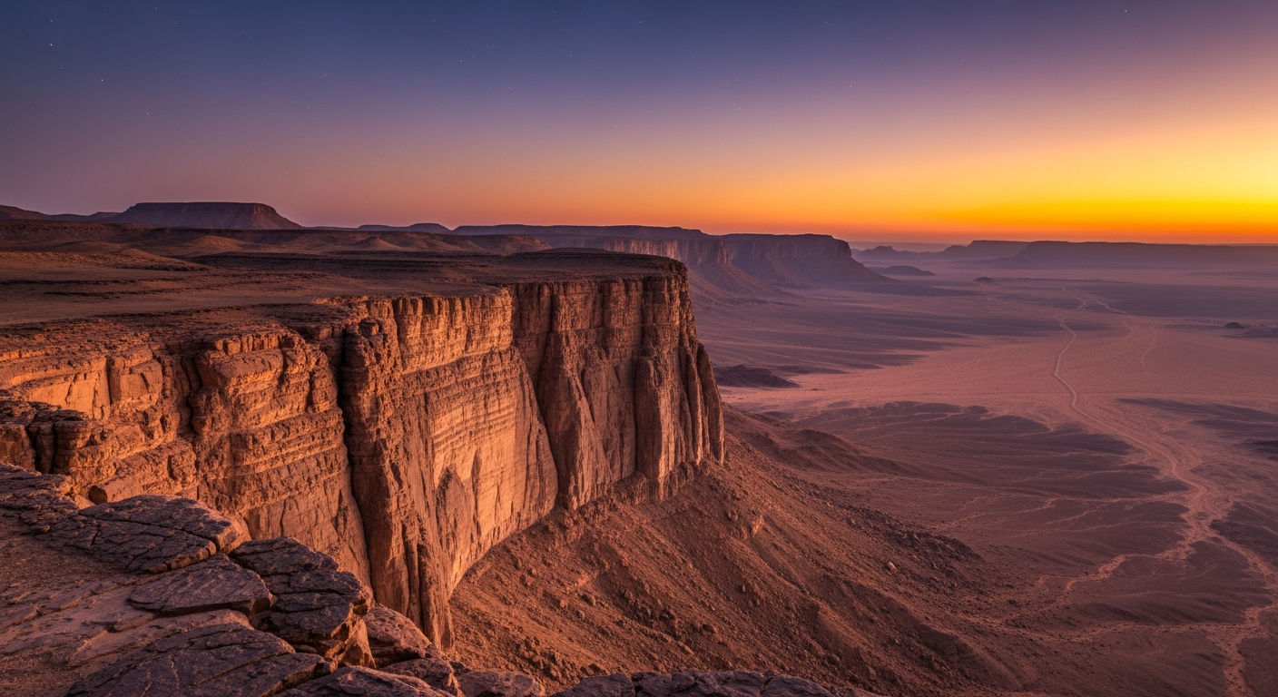 Journey from the heart of Riyadh to the breathtaking Tuwaiq Cliffs. Experience the vastness of the Arabian desert and witness the geological wonders where the world seemingly ends.